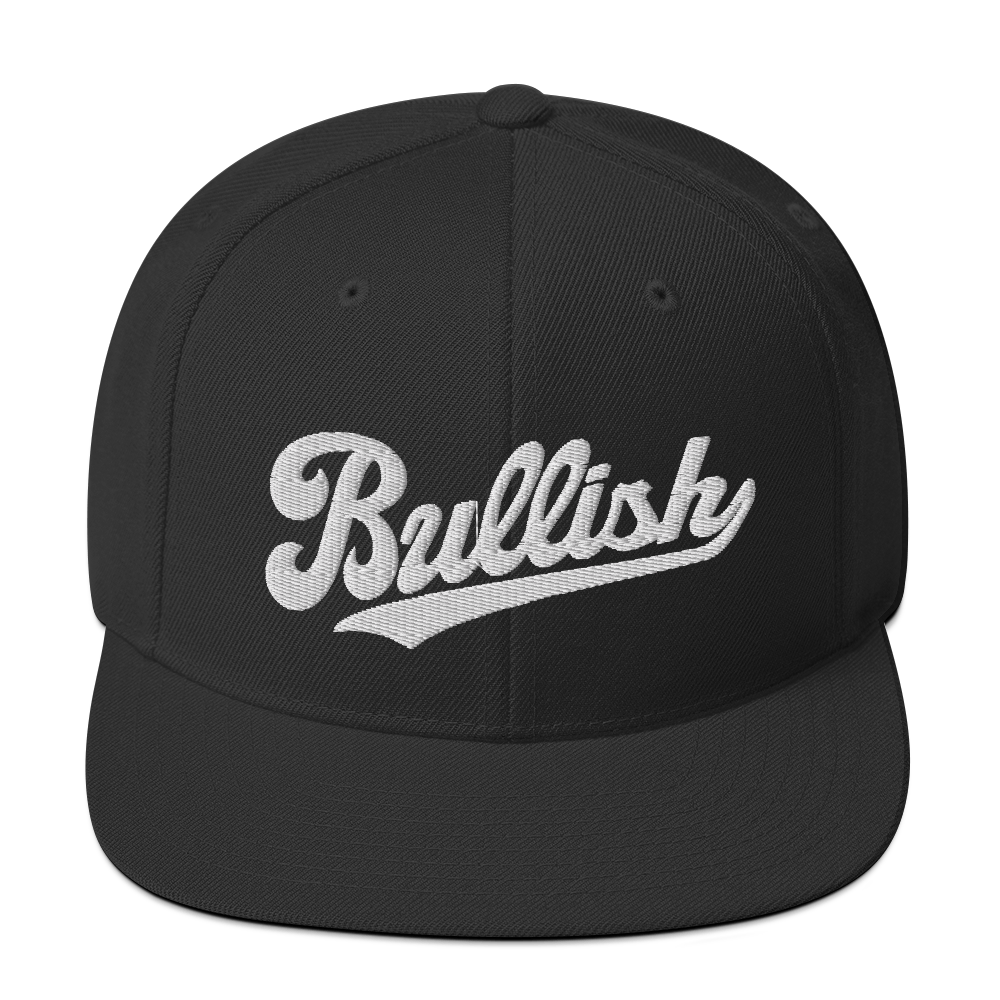 Stay shaded but don't be shady! Structured 6-panel hat designed with a classic fit, flat brim, and full buckram. The adjustable snap closure makes this comfortable for most head sizes. BULLISH!