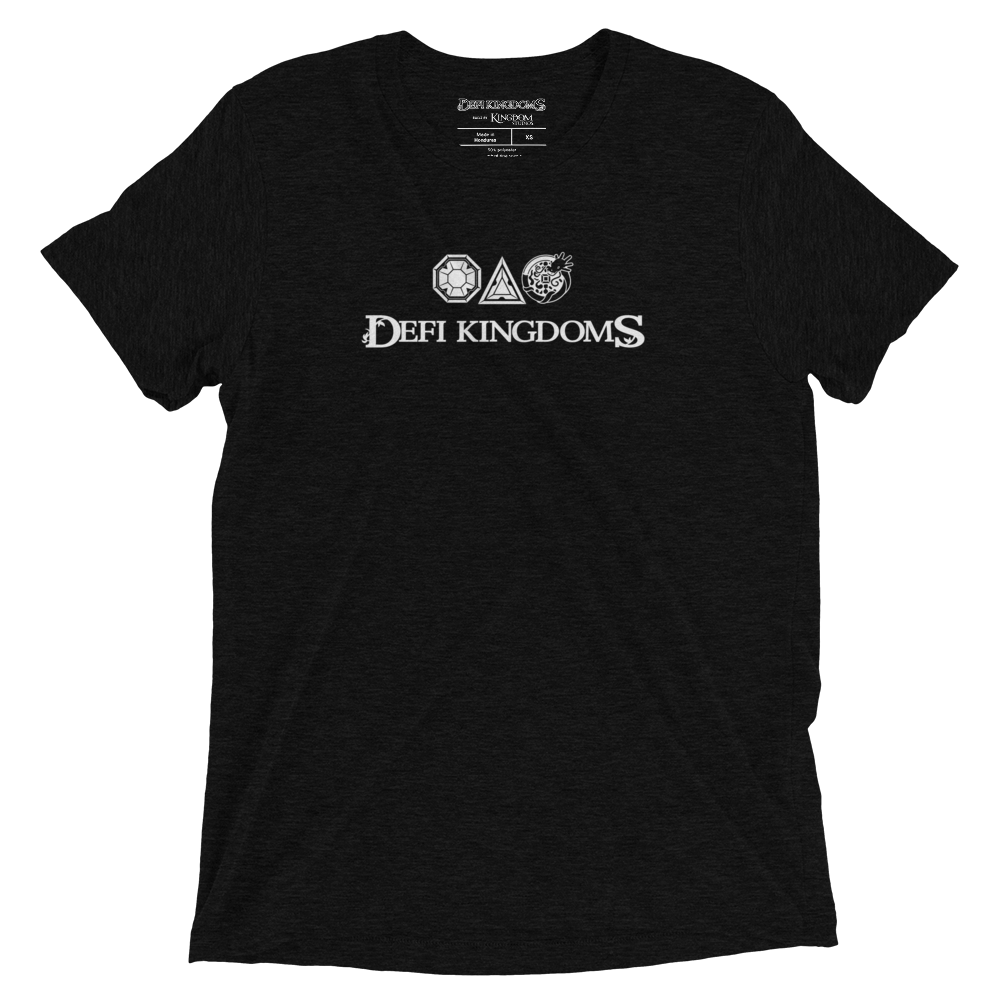 The new JADE token created for DeFi Kingdoms Serendale realm on Klaytn joins JEWEL and CRYSTAL on this iconic shirt! This shirt is a big favorite at the Kingdom Studios team especially because of the soft tri-blend fabric which creates a vintage, fitted look. And extreme durability makes this t-shirt withstand repeated washings and still remain super comfortable.